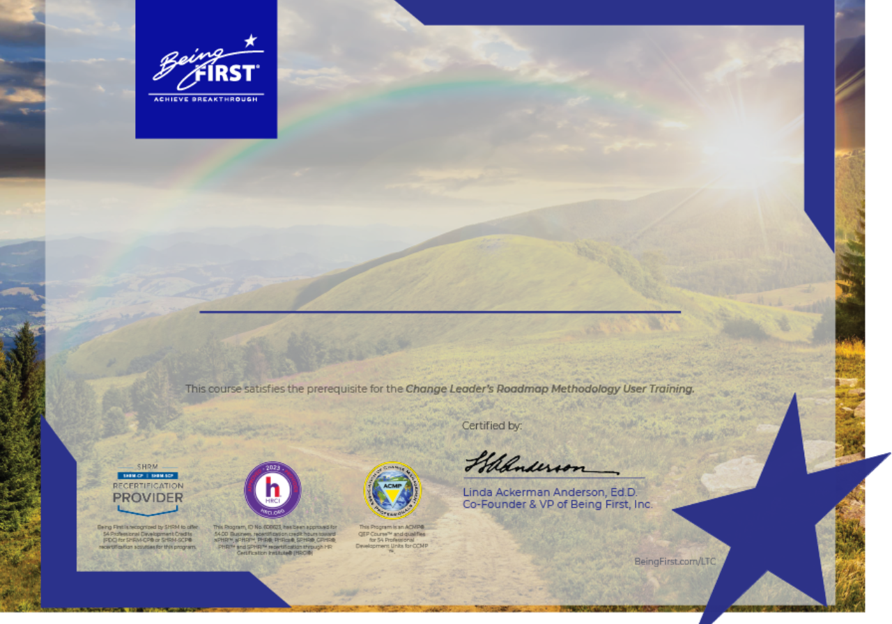 "The founders of Being First are core to the field of Conscious Change Leadership. Their deep and rich approach continues to push its boundaries. Dean and Linda have devoted their careers to developing highly successful change leaders."
